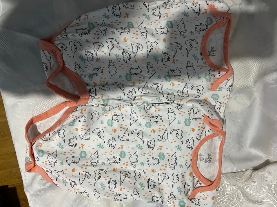 Kolsuz, V yakalı ve fermuarlı erkek bebek body. Yumuşak sentetik kumaştan, pastel tonlarda çok renkli bohem dinozor desenli.