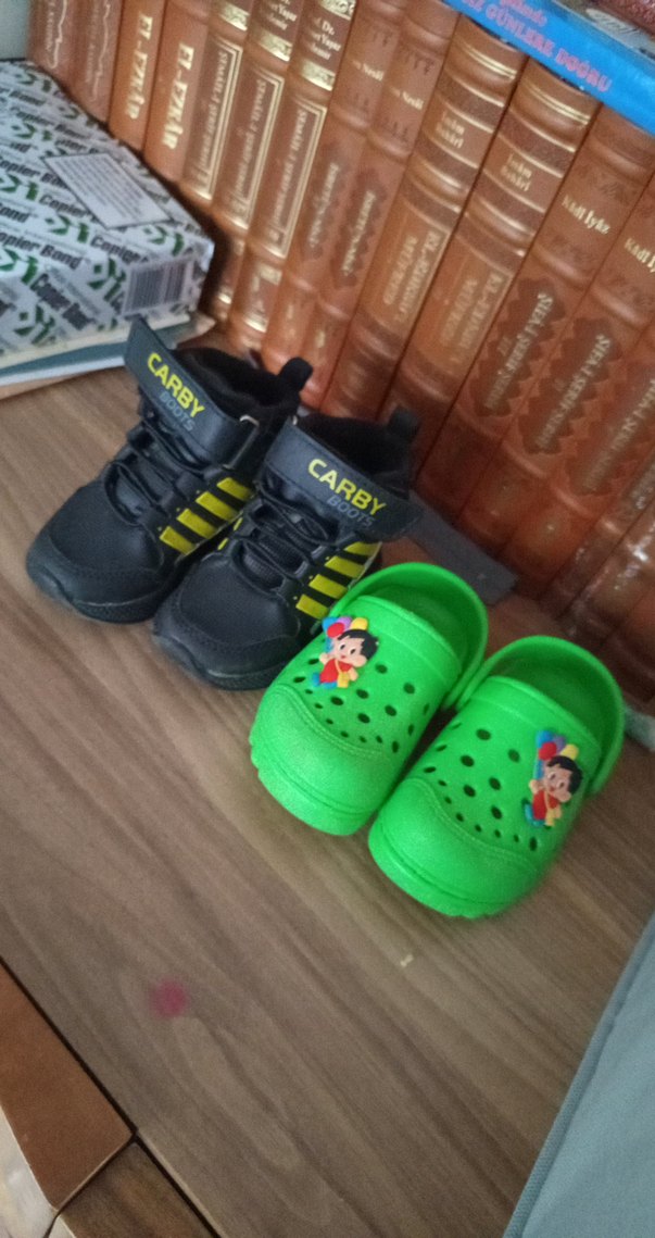 bot birkaç kez kullanildi yeniden farkksiz 22 no Renkli yeşil baskılı erkek çocuk terliği,22_23 no kolay kullanım için velcro bantlıdır. Dayanıklı kauçuk malzemeden üretilmiştir.