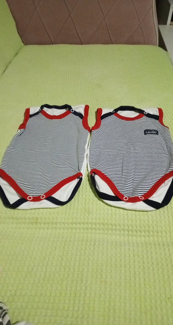 Renkli şerit detaylı, çizgili askısız erkek bebek zıbınları, fermuarlı ve yumuşak sentetik kumaştan üretilmiştir.