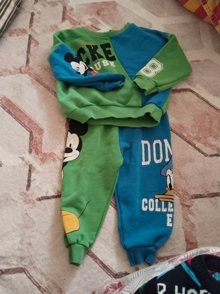 Erkek bebek için çok renkli baskılı, uzun kollu ve yuvarlak yakalı eşofman takımı. Yumuşak ve sıcak kumaştan, kolay giyim için cırt cırt detaylıdır. Eğlenceli karakter baskıları ve koyu canlı renkler içerir.