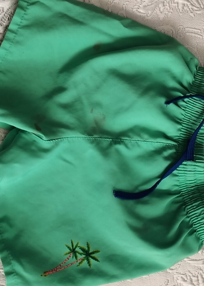 erkek bebek deniz şortu.. fotoğraf ta görüldüğü gibi boya lekesi mevcut.. kullanıma engel degil