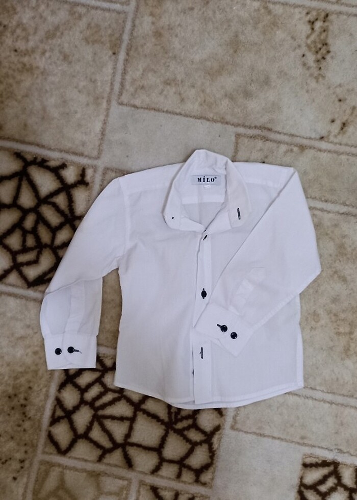 1-1.5 yaşa uygun erkek bebek gömlek abiye. 1 tanesi uzun kollu diğerleri kısa kollu ama yazlık ürünlerdir. Uzun kollu olanın kolunda sırtında hafif leke var sandık lekesi gibi,büyük ihtimal çamaşır suyu ile çıkar.Siyah pantolon ile kombin yapıldıklarinda çok şık duruyor. Üçü birlikte fiyattır.