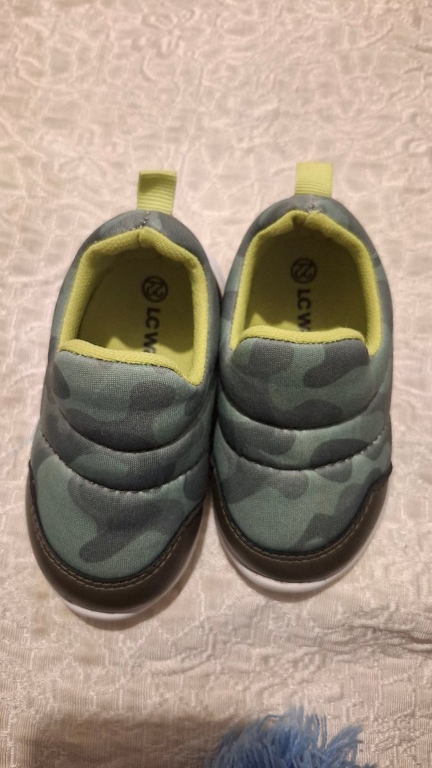 Gri kamuflaj desenli, kaymaz tabanlı ve cırtcırtlı erkek bebek ilk adım ayakkabısı. İç kısmı sarı renkte ve sokak stili uygundur.