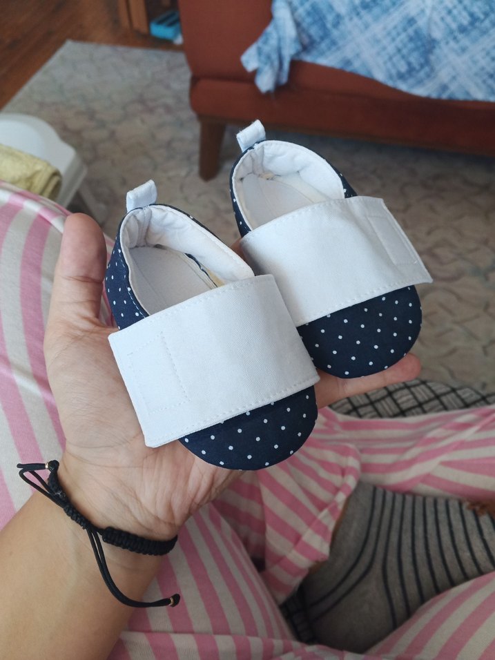 Erkek bebek ilk adım ayakkabısı, renkli puantiyeli desen ve beyaz cırt cırtlı bantlarla kolay kullanım ve rahatlık sağlar.