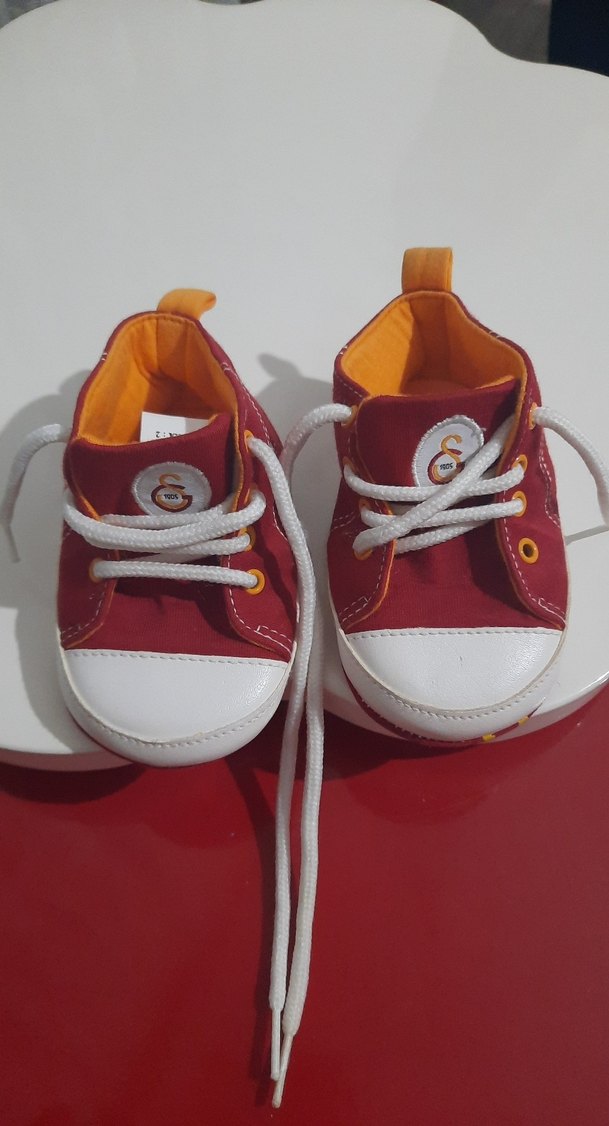 Erkek bebekler için renkli baskılı, kaydırmaz tabanlı kırmızı ilk adım ayakkabısı, Velcro kapanışlı, sokak stili için uygundur. 6 ile 9 ay arasında olur kız erkek kullanabilir Galatasaray lisanslı üründür 19 ile 20 numarasına olur