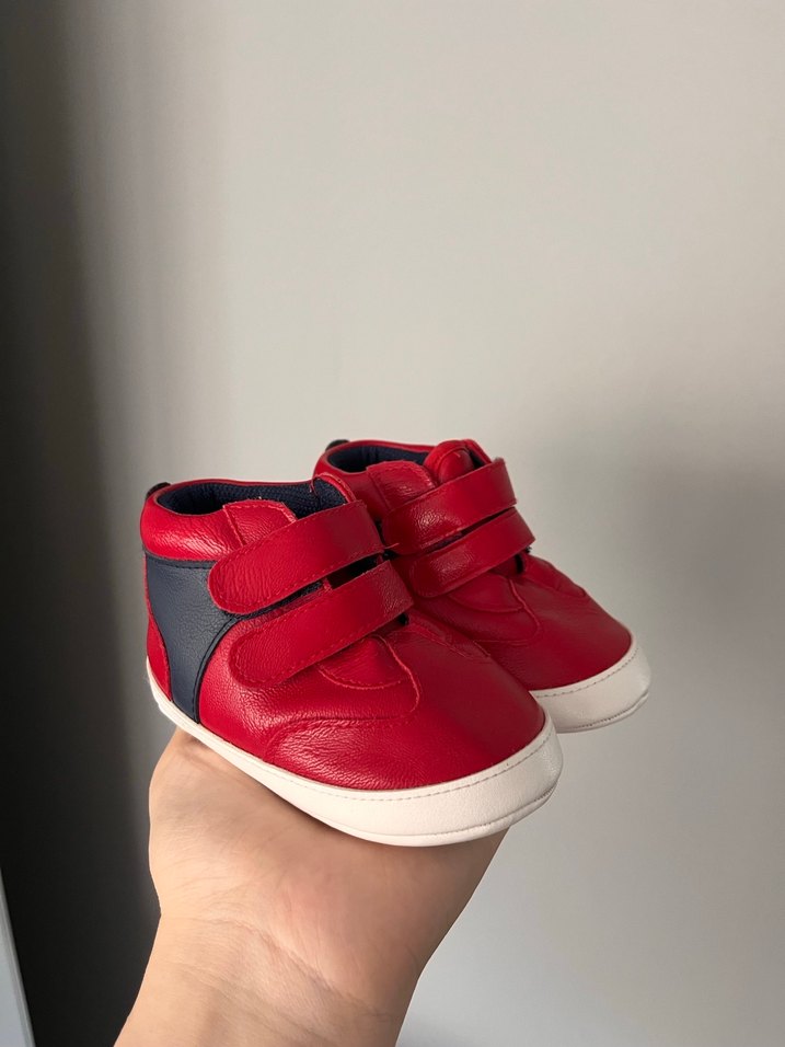 Erkek bebekler için kırmızı renkli, cırt cırtlı ilk adım ayakkabısı. Renkli ve rahat sokak stili tasarım, kauçuk tabanlıdır. Çok az kullanıldı temiz ve defosuzdur