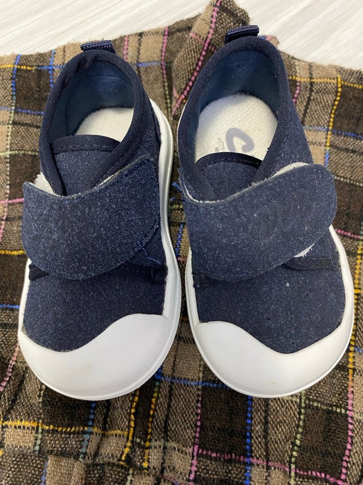 Lacivert renkli, kauçuk tabanlı ve cırt cırtlı erkek bebek ilk adım ayakkabısı, rahat ve günlük sokak stili için uygun.