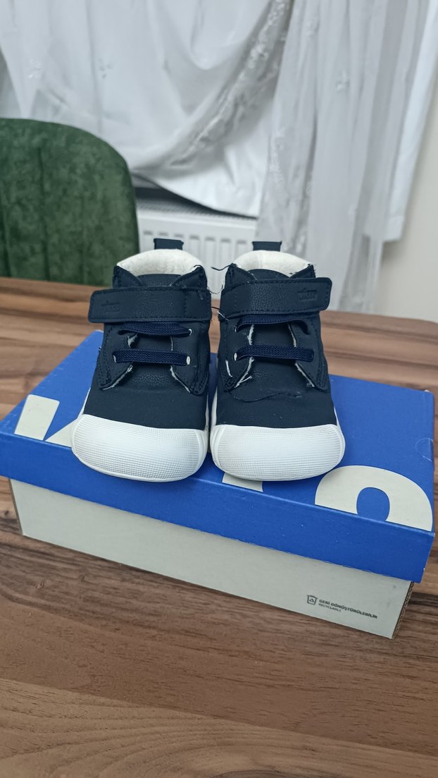 22 numara. Oğlum 1 yaş kreşte giysin diye almıştım. Temiz kullandık. Görsellerdeki gibi.