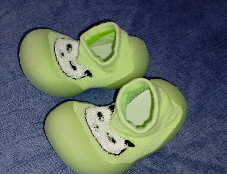 Yeşil renkli, örgü üst yüzey ve kauçuk tabanlı erkek bebek ilk adım ayakkabısı. Trendy ve streetwear tarzına uygun, yumuşak ve renkli görünümlü.