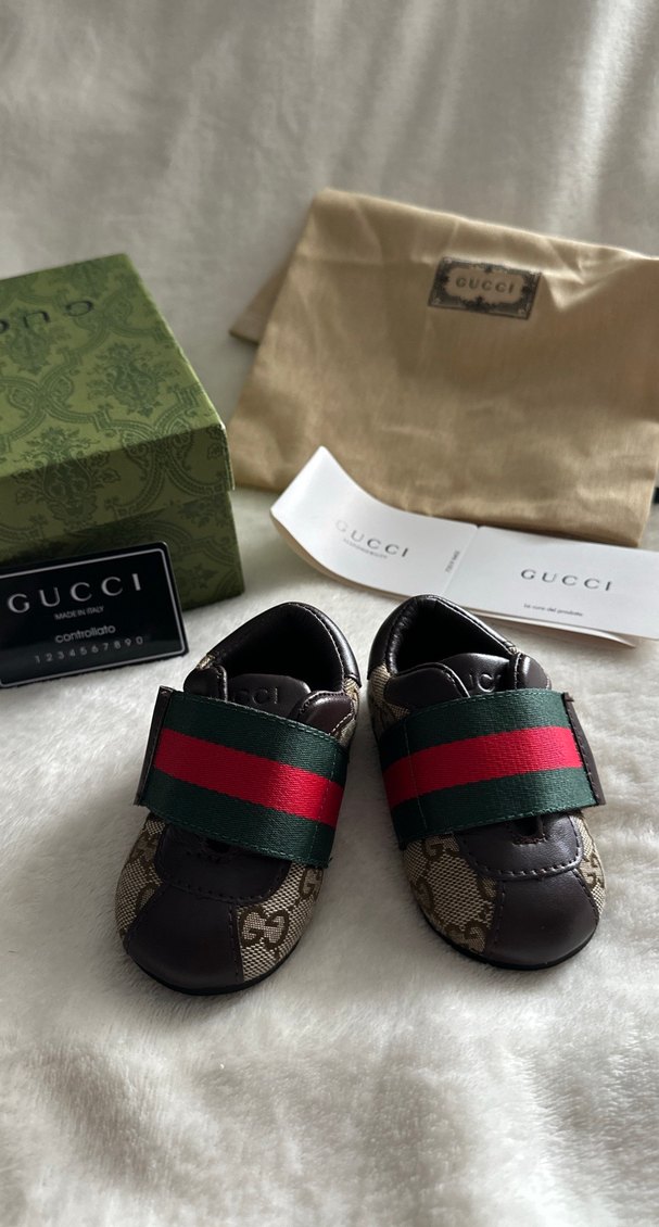 Kahverengi yılan desenli, kauçuk tabanlı, cırt cırtlı erkek bebek ilk adım ayakkabısı. Yeşil ve kırmızı şeritli sokak stili detaylarıyla.
