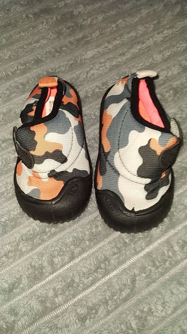 Erkek bebekler için gri kamuflaj desenli, cırt cırtlı, kauçuk tabanlı ilk adım ayakkabısı. Trend sokak stili için uygundur.