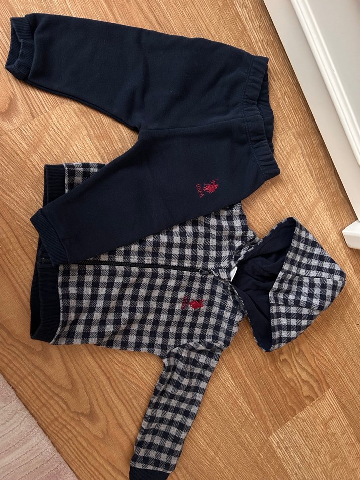Bu erkek bebek takımı, fermuarlı önü ve kapüşonlu ekose desenli üst ile koyu renk pantolondan oluşur. Uzun kollu, yumuşak ve sıcak kumaştan yapılmıştır.