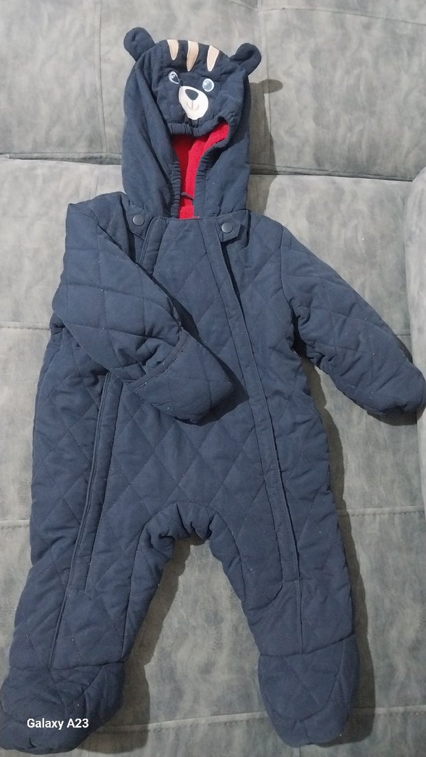 lacivert kırmızı renkli, cift fermuarlı ve kapüşonlu, ayı yüzü detaylı erkek bebek kayak tulumu. Yumuşak ve sıcak kumaştan üretilmiştir, sokak giyimine uygundur. ❄️