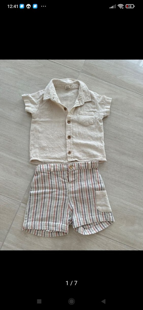 Erkek Bebek Keten Kısa Kollu Gömlek ve Çizgili Şort