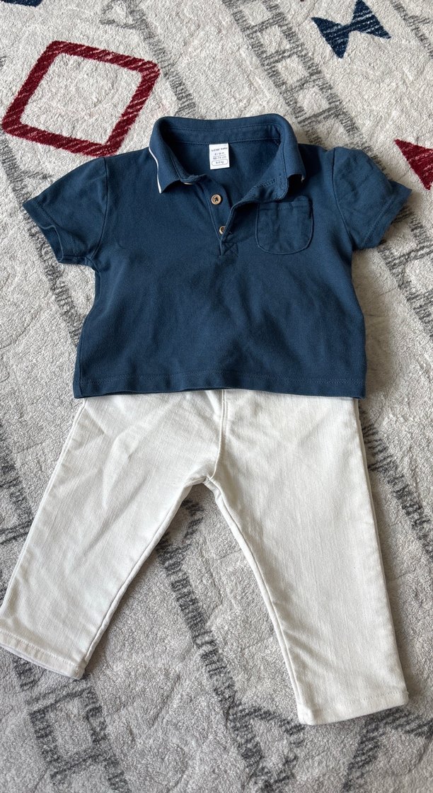 LCW 6-9 ay beyaz kot pantolon polo yaka lacivert tişört