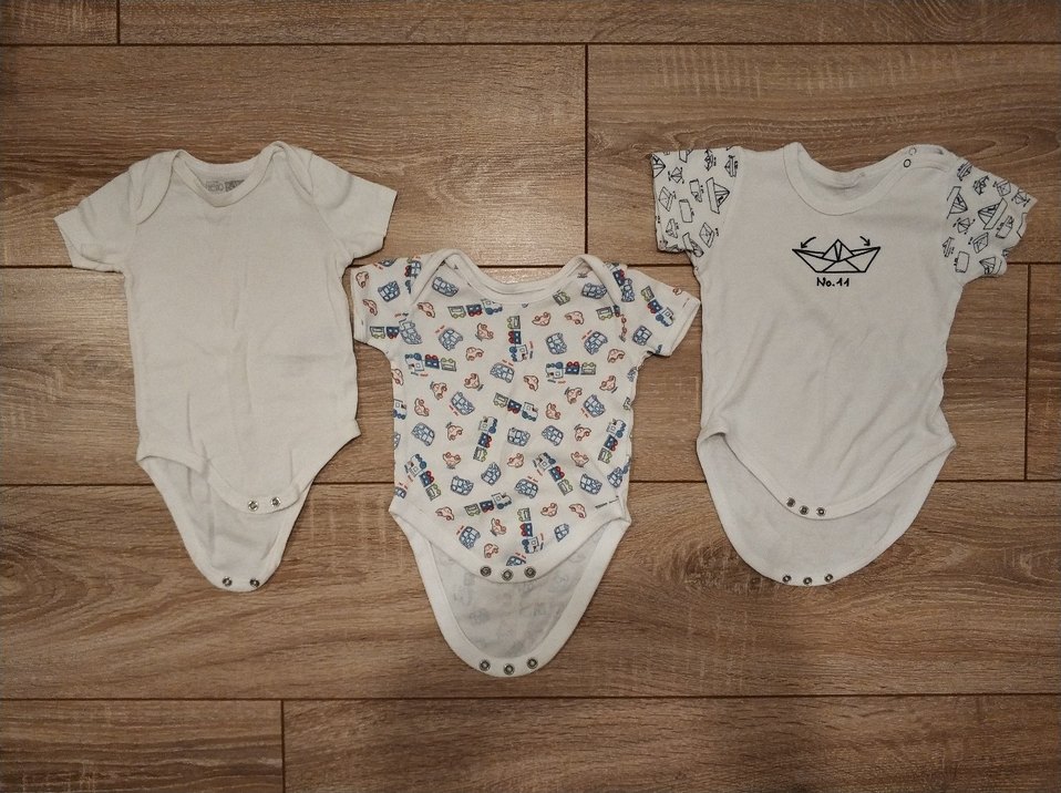 Pamuklu, kısa kollu, düğmeli beyaz erkek bebek body. Renkli baskılı deseni ve bisiklet yaka detayıyla sokak stiline uygun. %100 pamuk