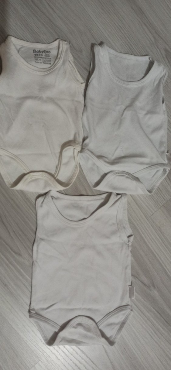 Pamuklu, kolsuz, yuvarlak yakalı beyaz erkek bebek body seti. Rahat ve sade tasarım, normcore tarzında.