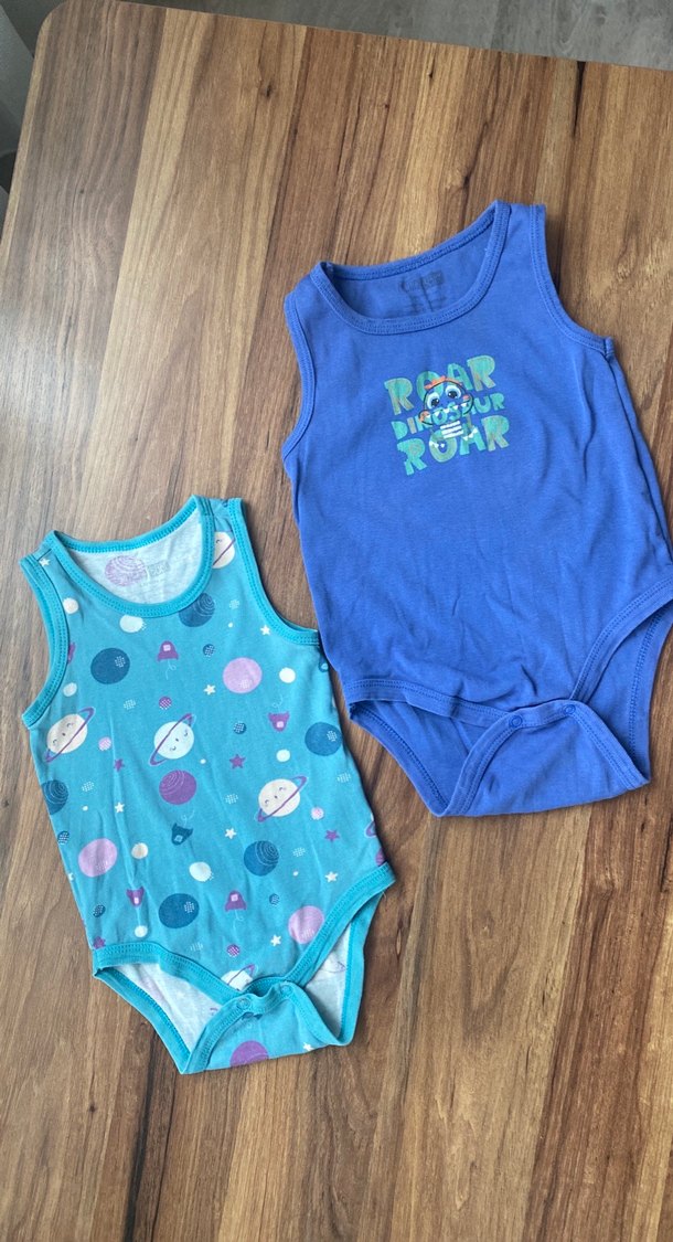 Mavi tonlarda, kolsuz erkek bebek çıtçıtlı, renkli baskılar ve yumuşak, sıcak kumaş ile rahatlık sağlar. 9-12 AY