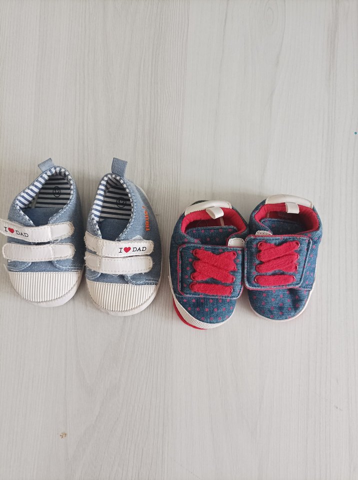 Mavi kot kumaştan, renkli batik desenli, velcro bantlı erkek bebek ilk adım ayakkabısı, sokak stili rahatlığı sunar.