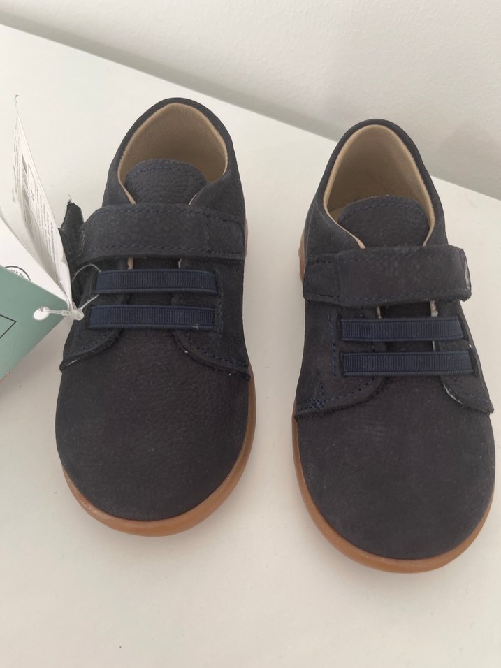 Lacivert süet erkek bebek ilk adım ayakkabısı, kolay giyilmesi için cırt cırtlı, sade ve rahat sokak stili görünümlü.