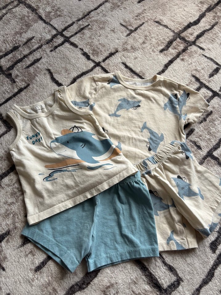 Erkek Bebek Mavi Baskılı Kısa Kollu Takım