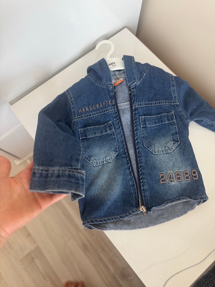Erkek bebek Mavi Denim Fermuarlı Ceket
