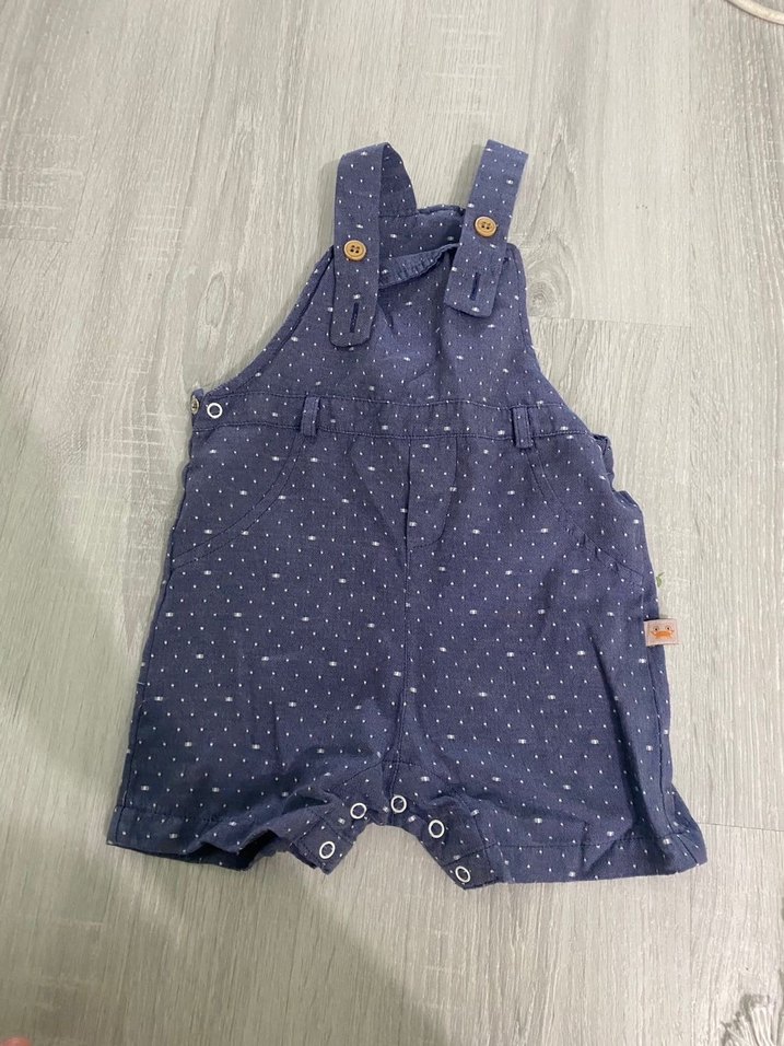 Erkek bebekler için düğmeli askılı, mavi kot kumaştan, bol kesim salopet . Hafif tie-dye deseni bulunur. Kol kısımlarımda ayarlama mevcut sarkmaması için 1 kez giyildi sorunsuz ve temiz