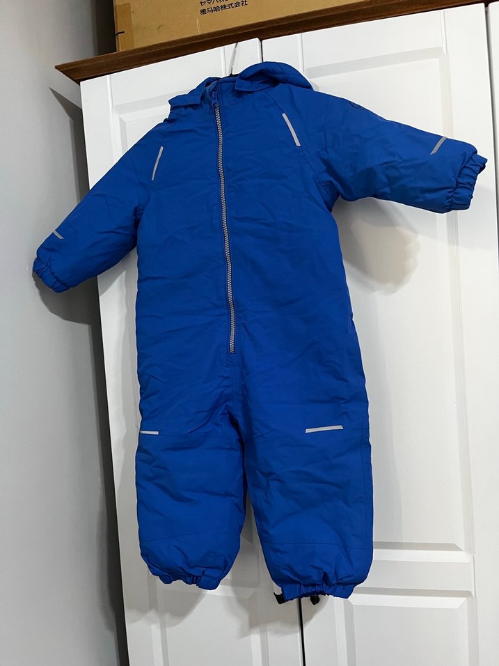 Koyu mavi renkli, kapüşonlu ve fermuarlı erkek bebek kayak tulumu. Yumuşak ve sıcak tutan kumaştan yapılmıştır. Düz tasarımlı, bilek ve ayak bileklerinde lastik detay bulunur. ❄️