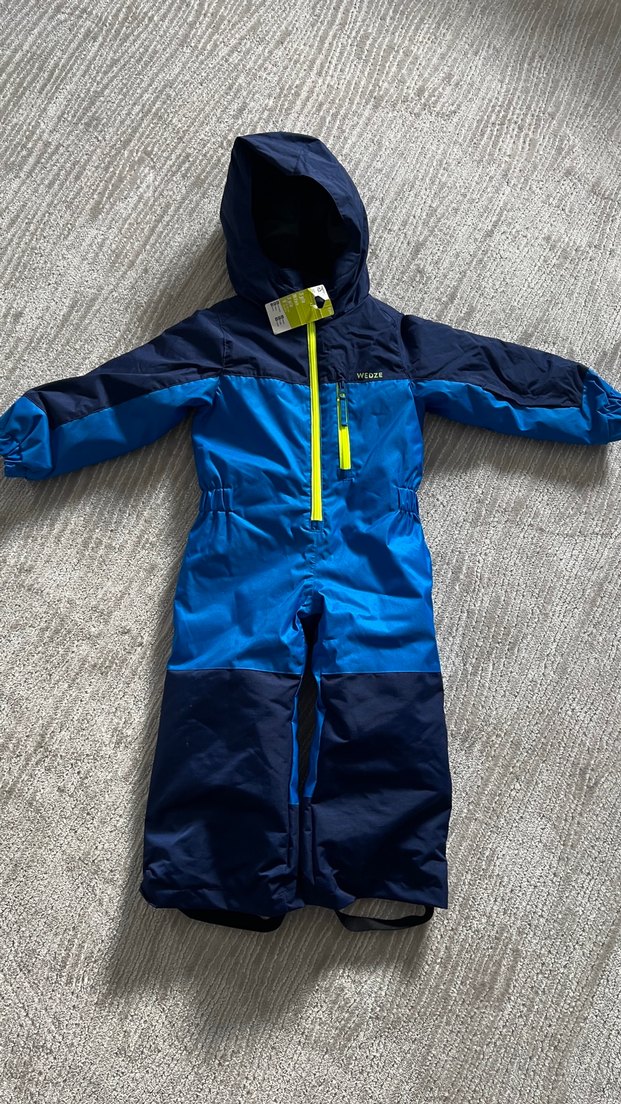 Koyu mavi renkli, fermuarlı ve kapüşonlu erkek bebek kayak tulumu. Yumuşak ve sıcak kumaştan, sokak tarzında üretilmiştir. ❄️Ürün sıfırdır