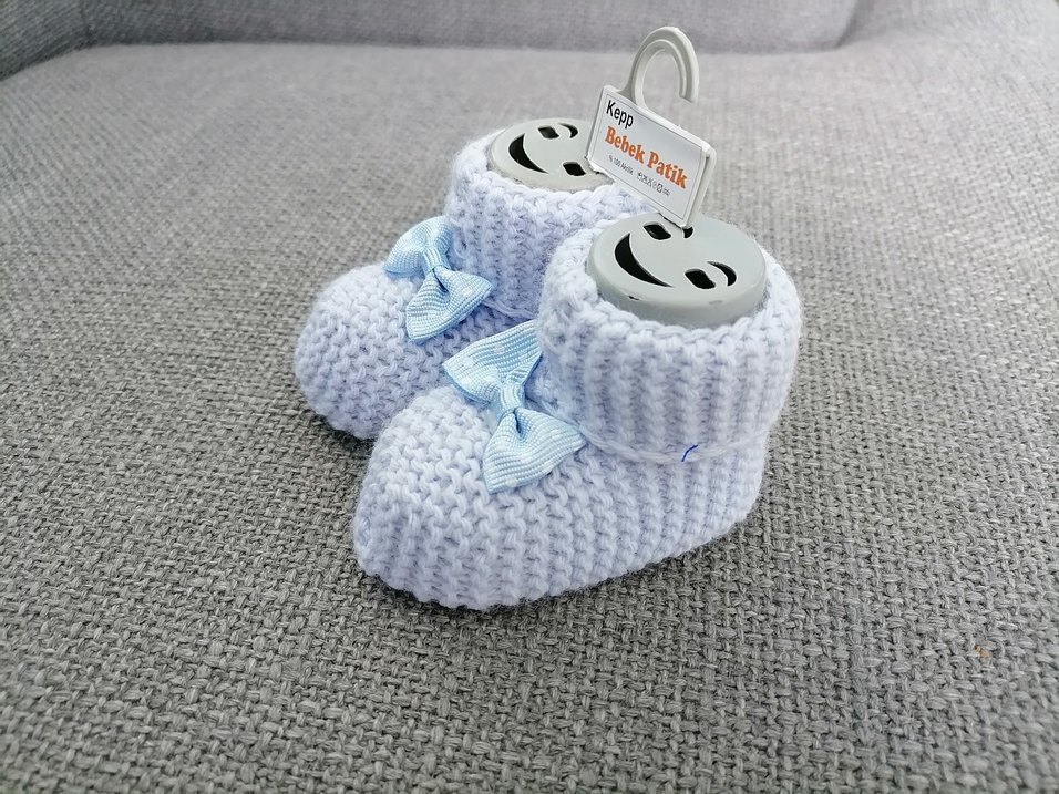 Erkek Bebek Mavi Örgü Patik