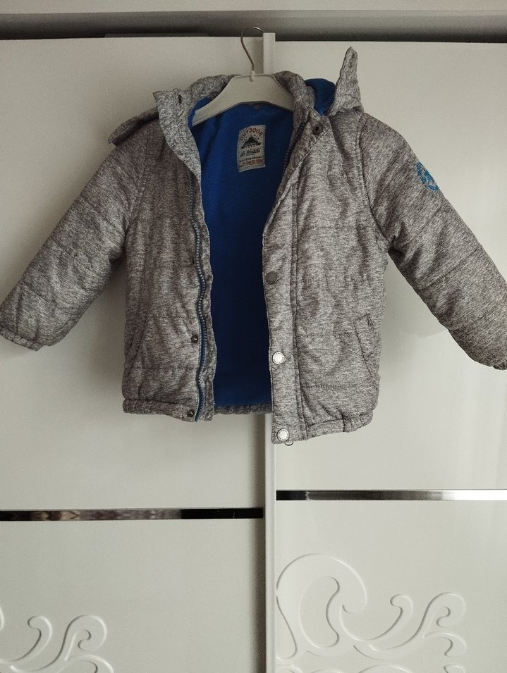 Düğmeli, gri renkli, yumuşak ve sıcak kumaştan yapılmış, kesimi dar olan erkek bebek/çocuk montu. sadece kirli başka hiçbir sorunu yok çok sıcak tutan tam kışlık bi mont. duruşu da çok güzel. ölçüleri resimlerde mevcuttur