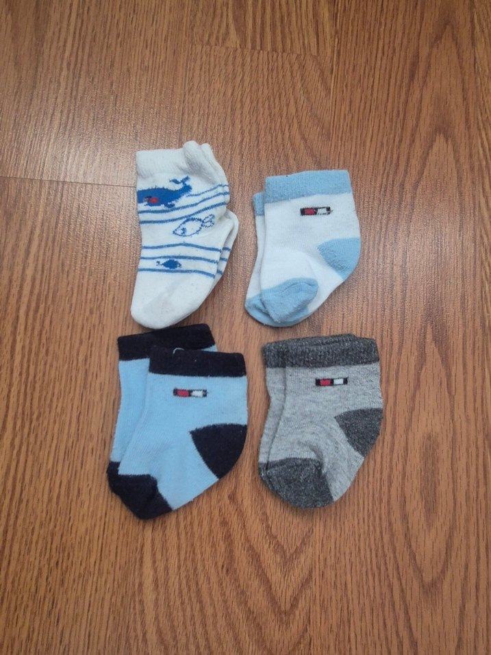 Nakışlı detaylara sahip mavi ve gri tonlarında erkek çocuk çorap seti. Her çift yumuşak kumaş ve rahat kesime sahiptir.