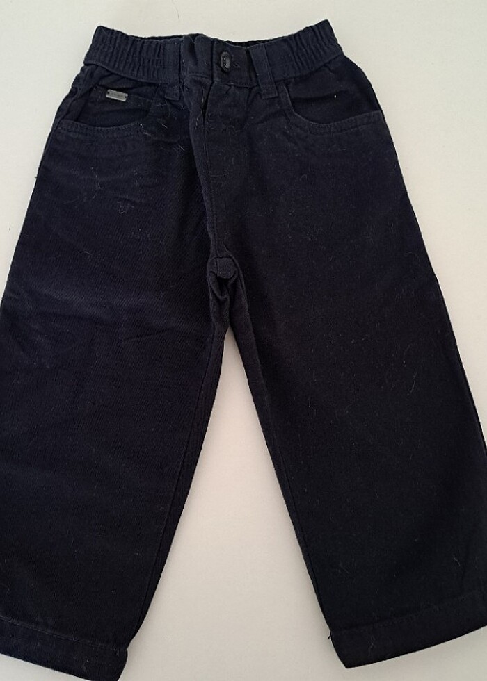 Hiç giyilmemiş, koyu lacivert, beli lastikli, arkası cepli, erkek bebek pantolonu