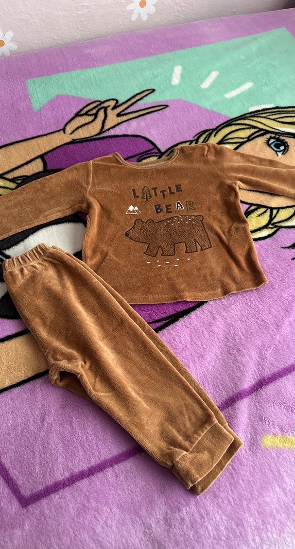 Erkek bebek kadife pijama takımı, tertemizdir. 12/18 ay