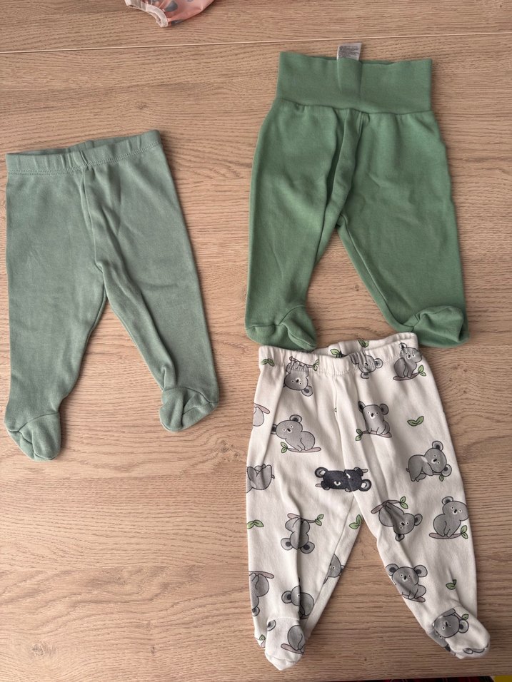 Yumuşak kumaştan, rahat kesim erkek bebek pantolonları; düz yeşil ve gri ayı desenli beyaz model. Günlük kullanıma uygun rahat ve şık.