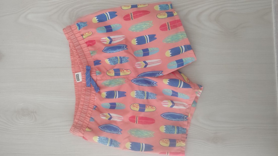 Renkli, sörf tahtası desenli erkek bebek havuz şortu. Ayarlanabilir bağcıklı ve elastik bel bantlıdır. ♂️
