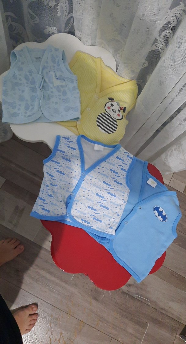 Yumuşak ve sıcak kumaştan yapılmış, renkli desenli, düğmeli kolsuz erkek bebek hastane tulumları. 4 adettir bir tanesi 6 ay ile 9 ay arasında diger 3ü 9ile 12 ay arasında oluyor 1tanesinde citcit yani sokulme durmuş dikilebilir birde sarı lekeleri var ufak görünmücek kadar leke çıkarıcı ile çıkartılır isteyen böylede kullanır o yüzden uyguna veriyorum 6 ile 9 ay yazan sıfır hiç giyilmedi diğerleri giyildi batman li mavidede sarı leke var ondan uyguna veriyorum hepsinin fiyatıdır tekli satışı yoktur 3ünü 20tlden o sökülen 15tlden vermiş oluyorum toplu fiyatıdır bu rakam 4nün 2 yelek batman lisanslıdir biri markadır