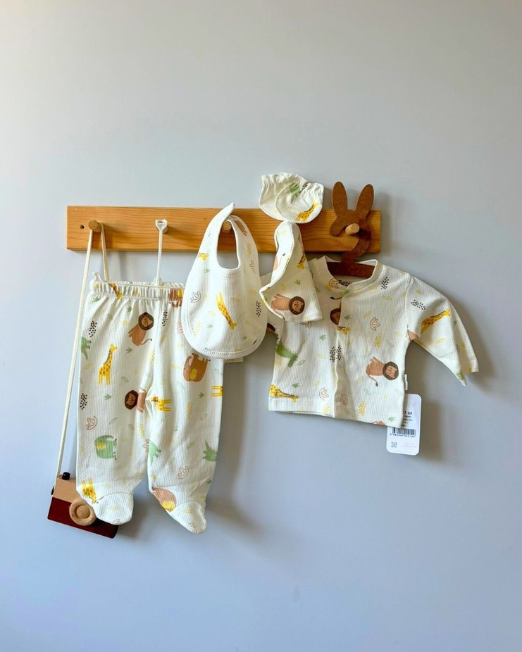 Erkek bebek Safari desenli 5li hastane çıkışı takım