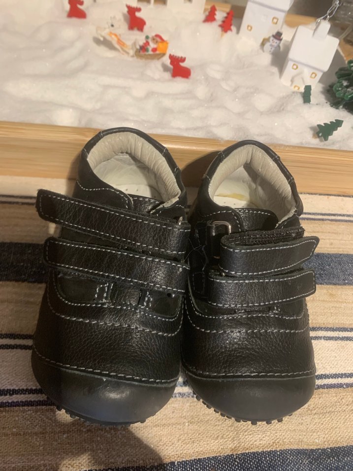 Siyah renkli, lastik malzemeden yapılmış, tokalı erkek bebek ilk adım ayakkabısı. Sokak tarzına uygun sade ve rahat tasarım.