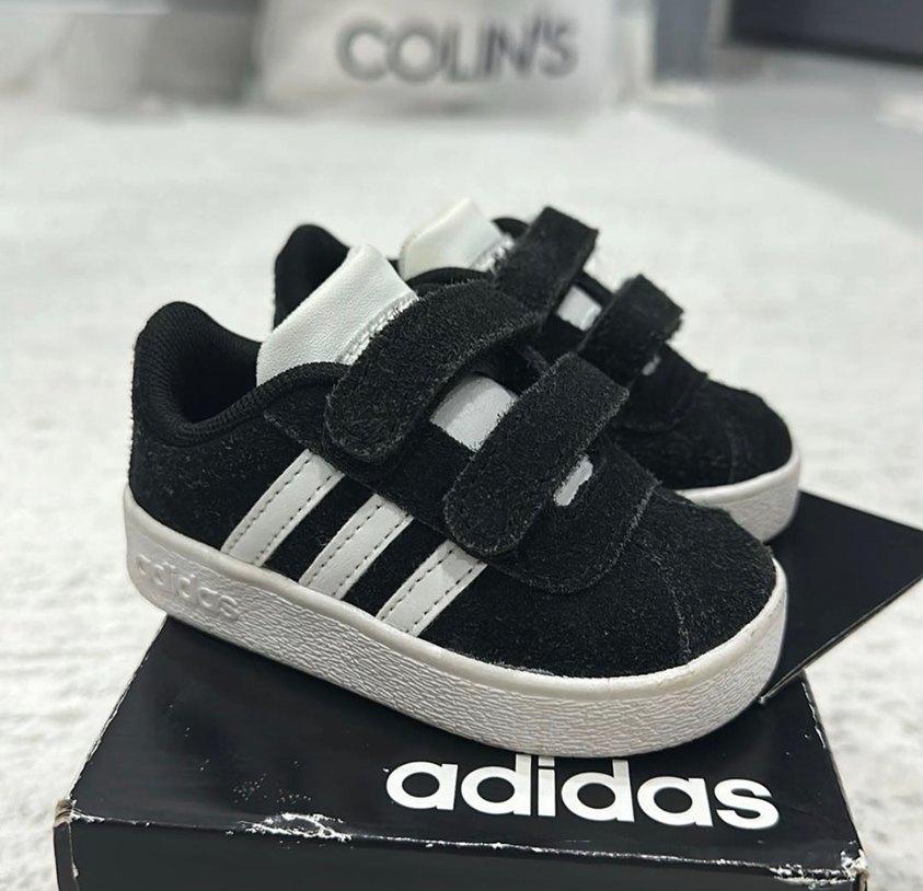Siyah renkli, zebra desenli ve cırt cırtlı erkek çocuk spor ayakkabısı. Kauçuk tabanlı, sokak stiline uygun adidas marka.