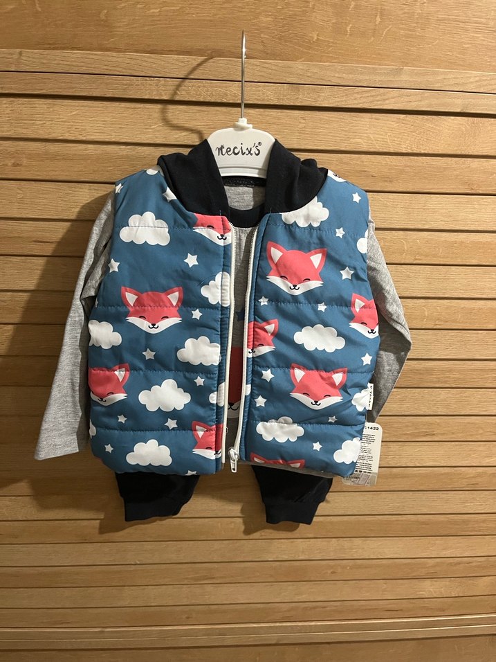 Gri renkli, baskılı ve fermuarlı erkek çocuk yeleği. Kolsuz, rahat kesim ve bisiklet yaka ile günlük sokak stiline uygun.