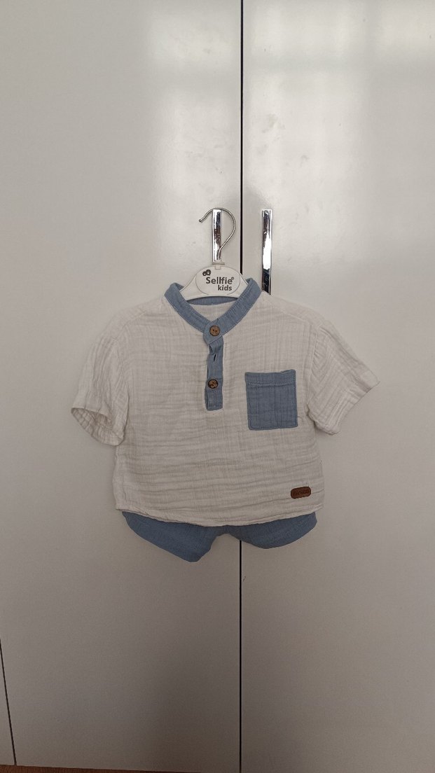 erkek Bebek 9-12 ay uyumlu müslin kısa kol şort takım yeni 1-2 kez giyildi