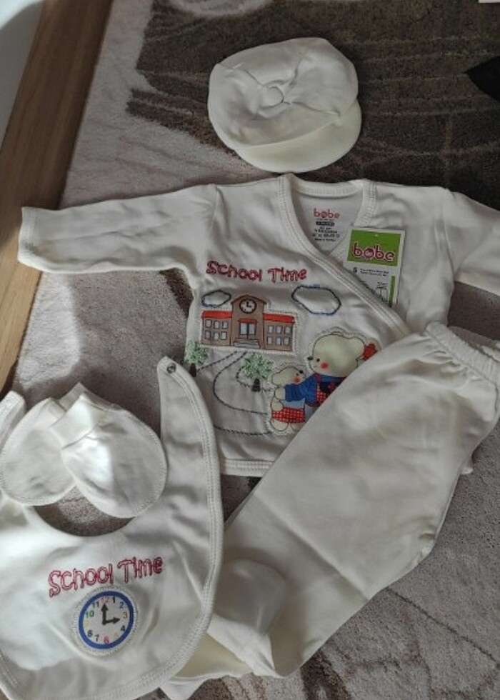 Erkek bebek takım Yenidoğan itibariyle kullanılabilir hediye gelmişti hiç kullanmadım kutusunda duruyor.