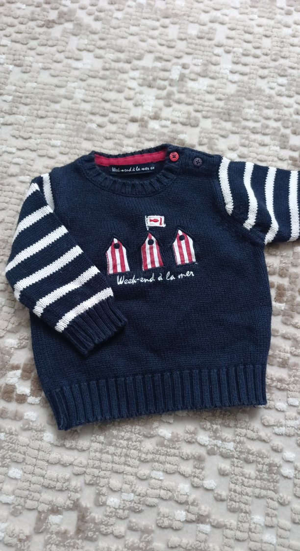 Erkek bebek lacivert triko kazak. 3-6 ay için uygundur. Yurtdışından alındı. Marka temsilidir.
