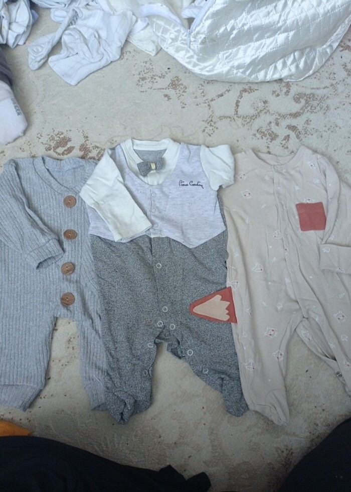 3 adet yeni doğan bebek tulumu 0.3 aylık içindir bebekler çabuk büyüdüğü için çok fazla giydirilemiyor ondan çok iyi durumdadır Andy wawa ve Pierre Cardin marka tulumlardır
