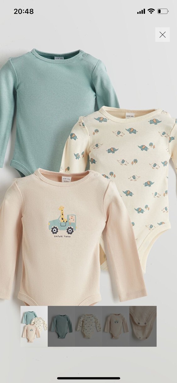 Pamuklu, uzun kollu erkek bebek bodysi, yuvarlak yakalı ve pastel renklerde, sevimli baskılarla rahat kullanım sağlar.