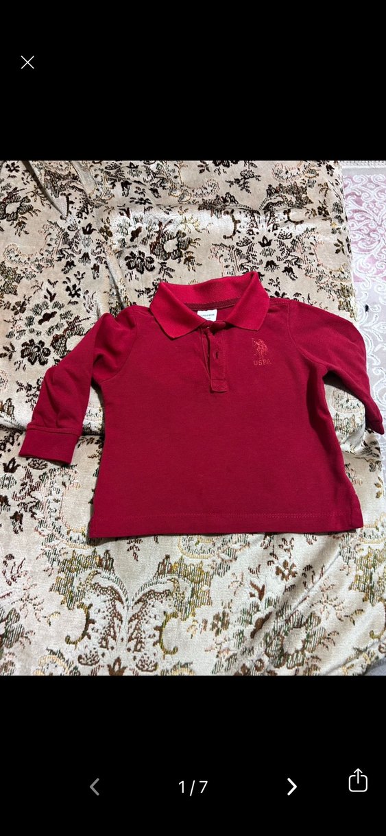 Bordo renkli, uzun kollu, düğmeli yakalı erkek bebek polo tişörtü. Rahat kesim ve yumuşak, sıcak kumaştan üretilmiştir. Baskılı detaylı sokak stili tişört.orjinal polodur etiketine bakabilirsiniz.Çok az kullanıldı.Herhangi bir deformesi yoktur.