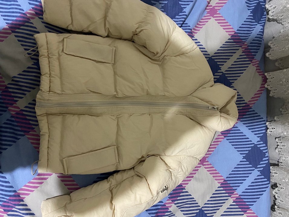 Erkek için bej renkte, fermuarlı, ve uzun kollu kışlık mont. Yumuşak sentetik kumaştan, gündelik kullanıma uygun rahat ve sade tarzda. 1 kez giyildi
