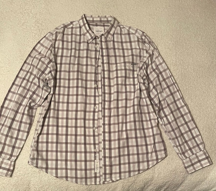 Pamuk kumaştan, bej kareli, uzun kollu, düğmeli ve yakalı erkek gömleği. Rahat kesimli ve günlük kullanıma uygun.