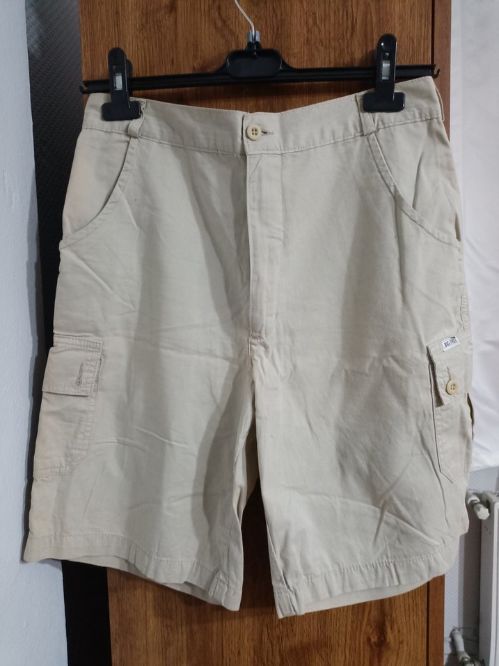 Erkekler için bej pamuklu, kemerli ve bol kesim rahat şort. Sokak stili ve çoklu cepleri ile dış mekan kullanımı için uygundur. Marka big free beden m likra yok bel 40 cm.x2=80cm. kalça 50 cm.x2=100cm. boy 50 cm.